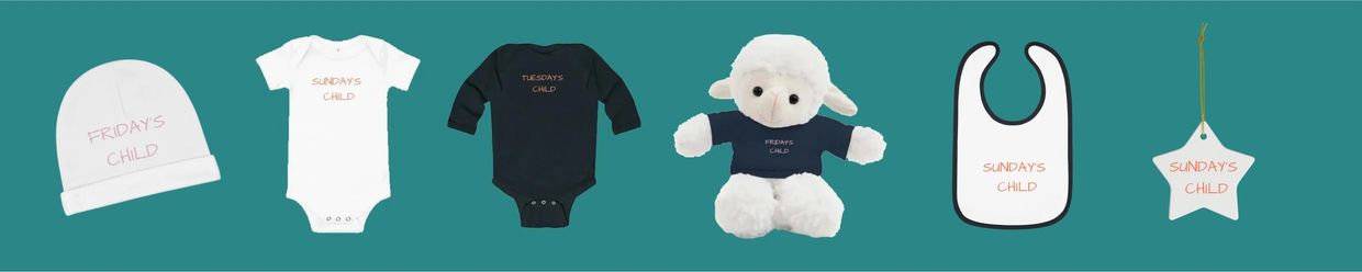 Inspired by astrology—and by the beloved Monday's Child rhyme—THE 7 DAYS Books, Customized Baby Essentials, and Nursery Wall Art make every day extra special!